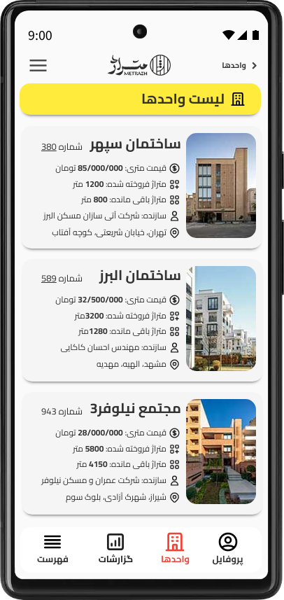 از قسمت واحدها ملک مناسب خود را از طریق مرور یا با استفاده از جستجوگر در سایت پیدا کنید